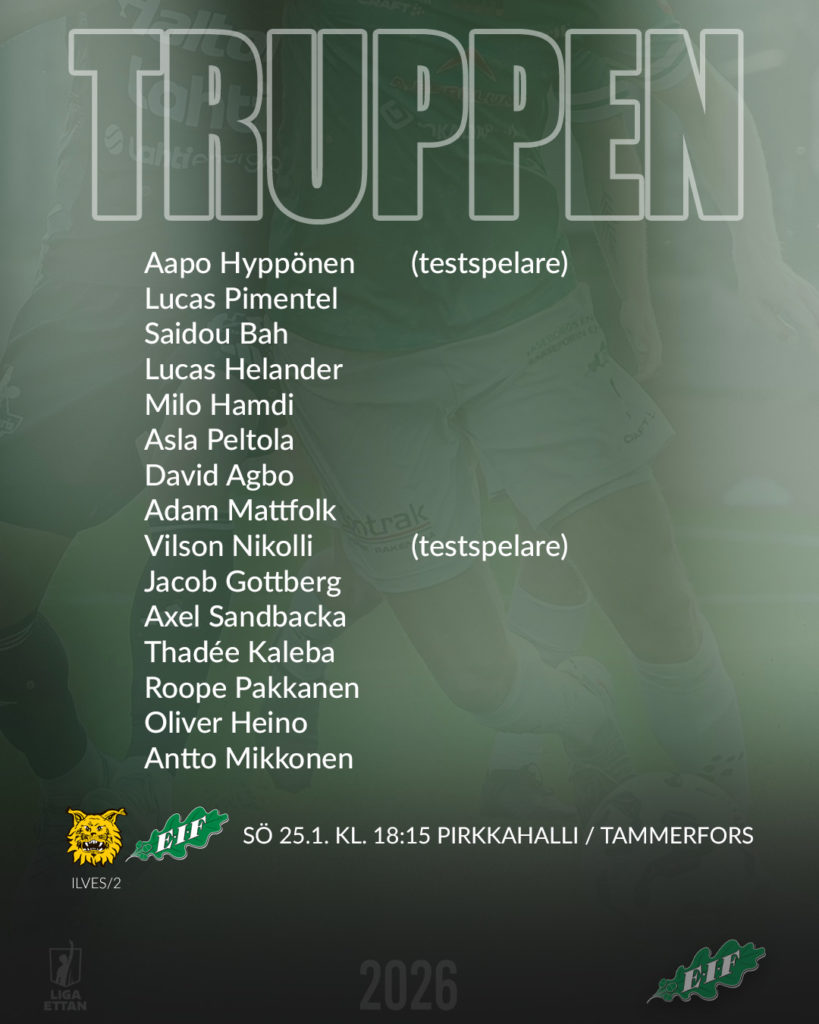 Ett mycket ungt EIF lag åkte till Tammerfors för att spelar säsongens första träningsmatch. Även säsongens första match på fullstor plan. I truppen fanns tre stycke 2009 födda spelare: Adam Mattfolk, Lucas Helander och Milo Hamdi. Tränaren Mikko Lignell hade 15 spelare med sig i Tammerfors.